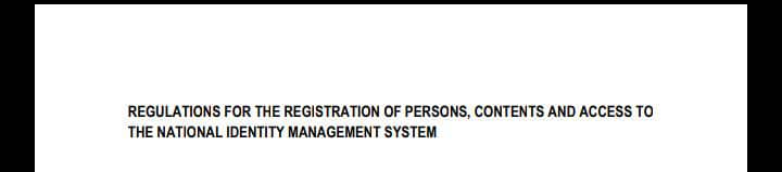 REGULATIONS FOR THE REGISTRATION OF PERSONS, CONTENTS, AND ACCESS TO THE NATIONAL IDENTITY MANAGEMENT SYSTEM (DRAFT)