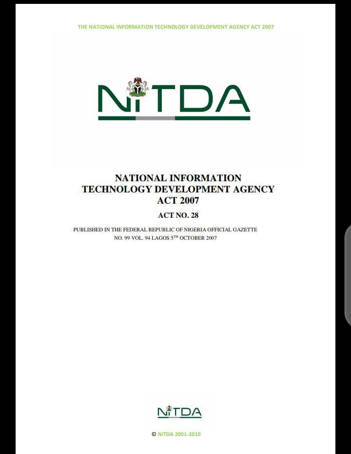 NATIONAL INFORMATION TECHNOLOGY DEVELOPMENT AGENCY ACT 2007